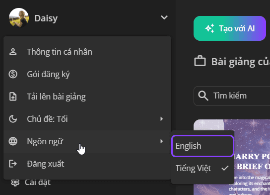 Làm thế nào để tạo bài giảng bằng một ngôn ngữ khác?