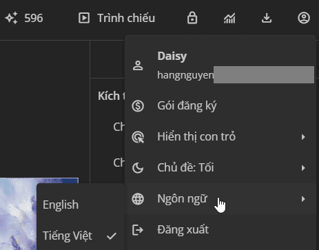 Sau khi đăng nhập vào tài khoản uPresenter, nếu muốn chuyển sang ngôn ngữ khác, bạn thực hiện các bước dưới đây: