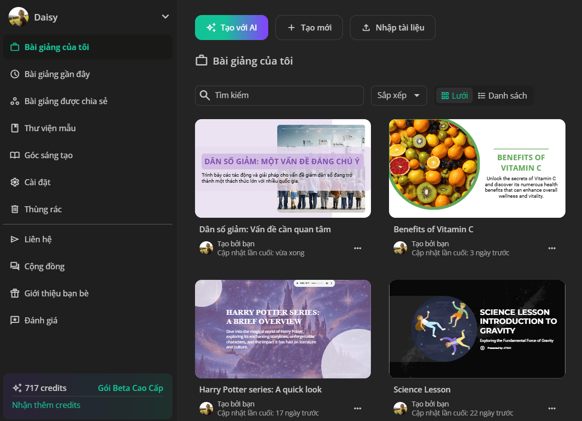 Sau khi chuyển sang ngôn ngữ khác, bạn chỉ cần nhập văn bản bằng ngôn ngữ của mình, sau đó làm theo hướng dẫn để tạo bài giảng.