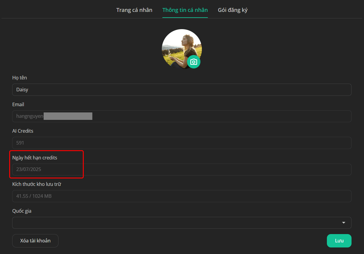 Credits có giá trị trong vòng một năm kể từ ngày mua. Bạn có thể kiểm tra ngày hết hạn trong phần Thông tin cá nhân (Cài đặt > Thông tin cá nhân).